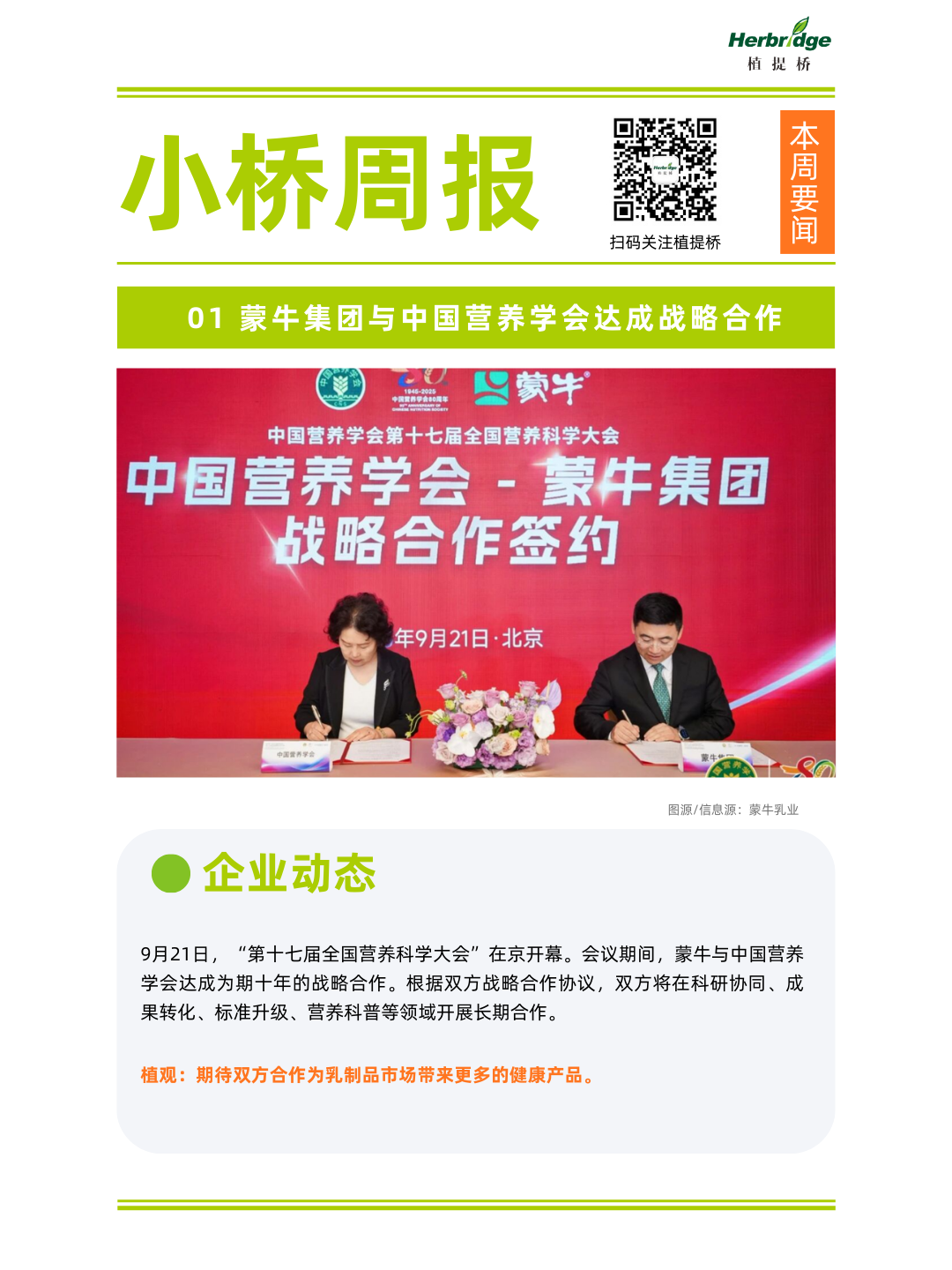 1、蒙牛集团与中国营养学会达成战略合作