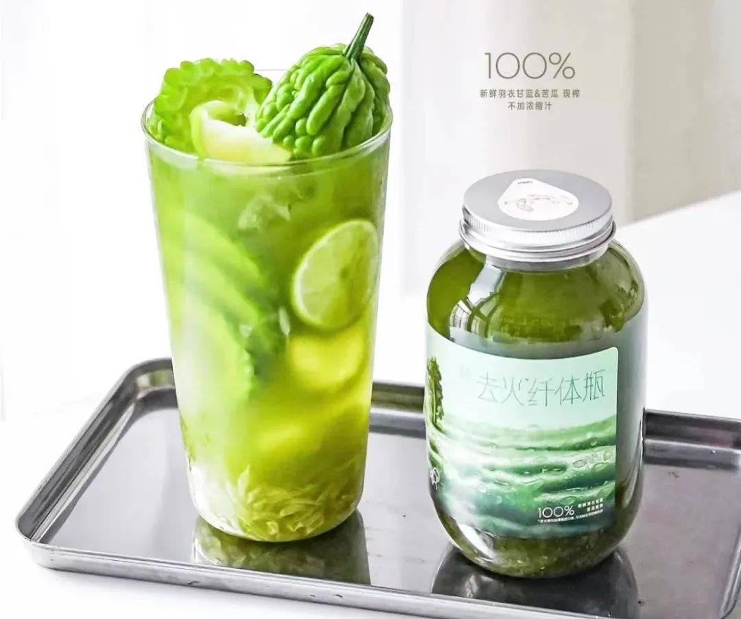 茶救星球的新品(救火)苦瓜绿蔬瓶,将羽衣甘蓝搭配苦瓜、西芹、蜜桔、无籽柠檬;
