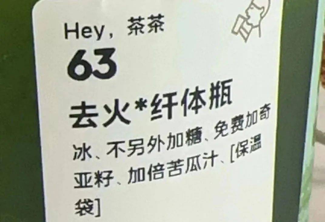 比如,喜茶的“去火·纤体瓶”,名字即是最大卖点。官方表示,一瓶“去火·纤体瓶”(推荐冰量、不另外加糖)的热量约等于一个苹果。“去火”需求强烈的顾客还可以在点单时选择“加倍苦瓜汁”。