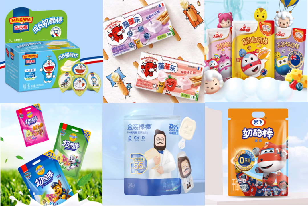 儿童奶酪:百吉福、乐芝牛、安佳、妙可蓝多、奶酪博士、妙飞