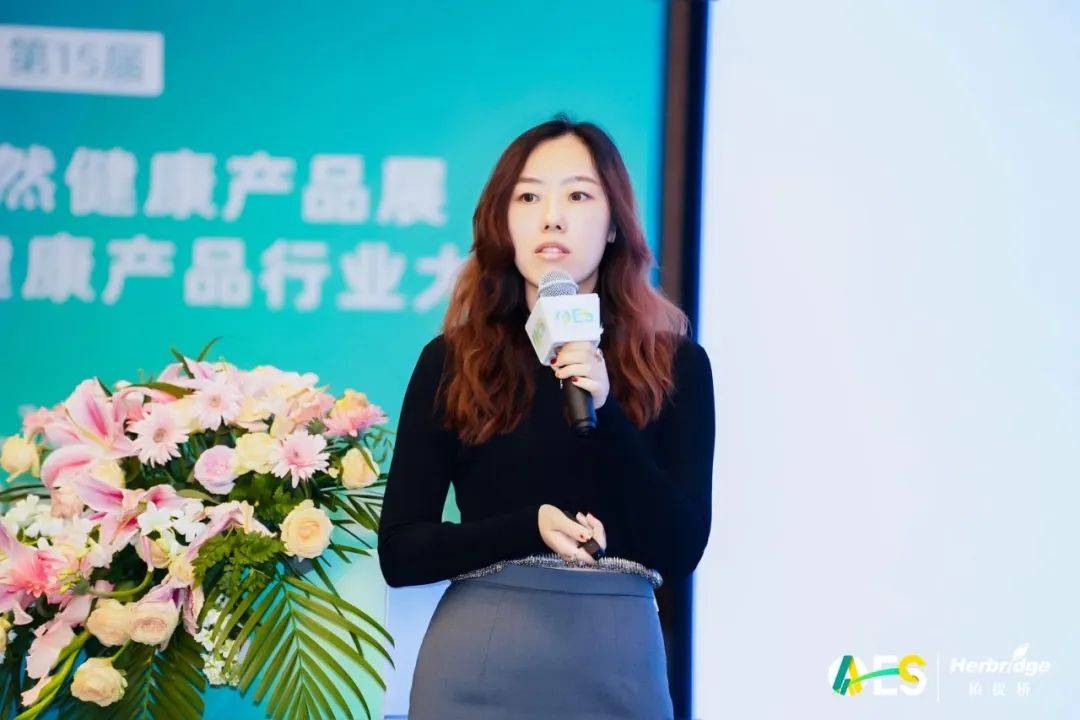 BGG-云彩金可亚太区市场经理刘雨馨也聚焦体重管理,在现场为大家带来了《BGG在体重管理领域的产品提案》的分享。详细介绍了苹果多酚、岩藻黄质、黑姜提取物三种成分在体重管理方向的机理研究,以及在终端产品中的应用。且刘经理表示目前这些成分已在日本、韩国等海外市场的终端产品中有着广泛应用,在国内市场也可通过跨境电商的形式进入。