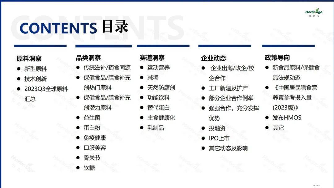 在Q3当季全球推出的新原料中,主要包括口服美容、体重管理等在内的9大热门赛道,这些新型原料在未来赋能热门赛道的“能级”有多大?将通过视频形式深入剖析。2023年Q3当季原料风向尽在其中。
