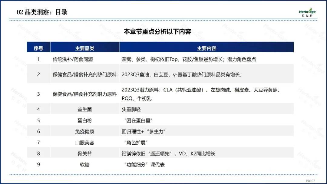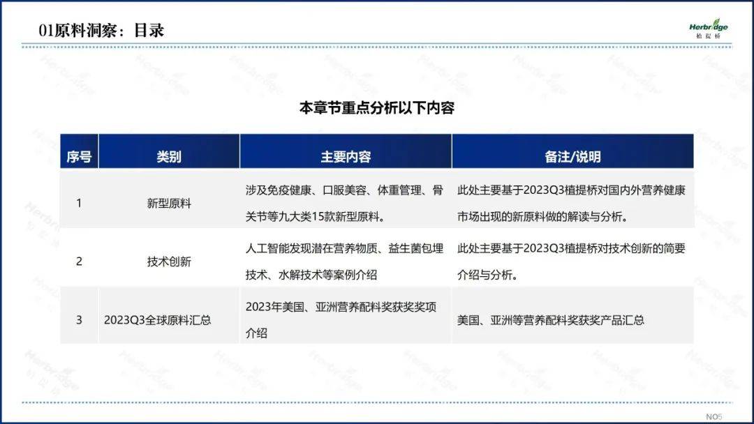 以季度为洞察研究周期,从原料、品类、赛道、企业动态和政策五个维度切入。