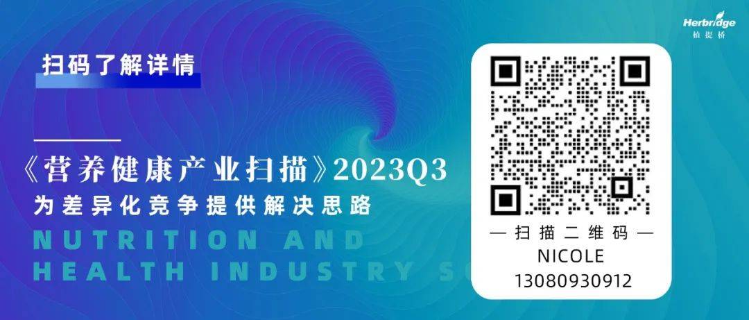 更多详细内容,见《营养健康产业扫描》Q3版(2023年),您可联系植提桥工作人员进行订购。