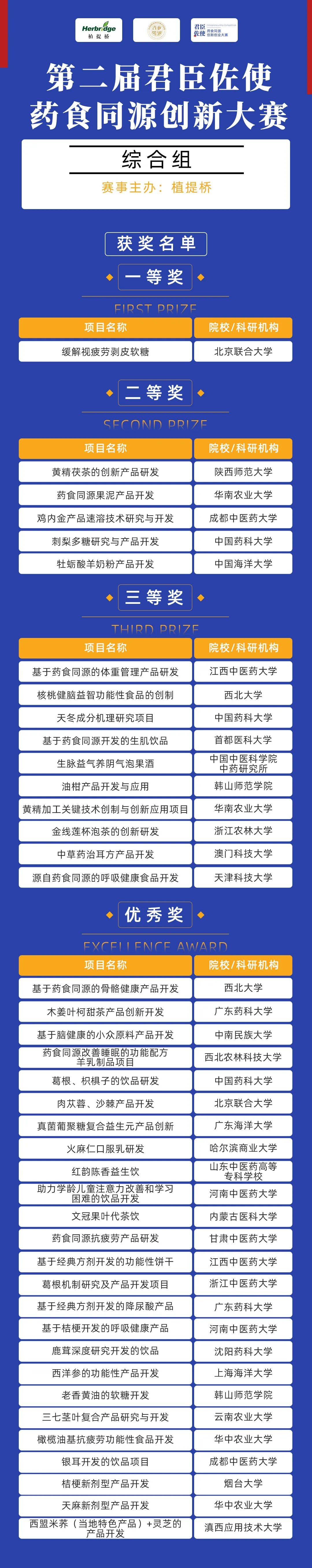 历经数月的紧张评选,第2届“君臣佐使”药食同源创新大赛【综合组】最终获奖名单正式出炉!