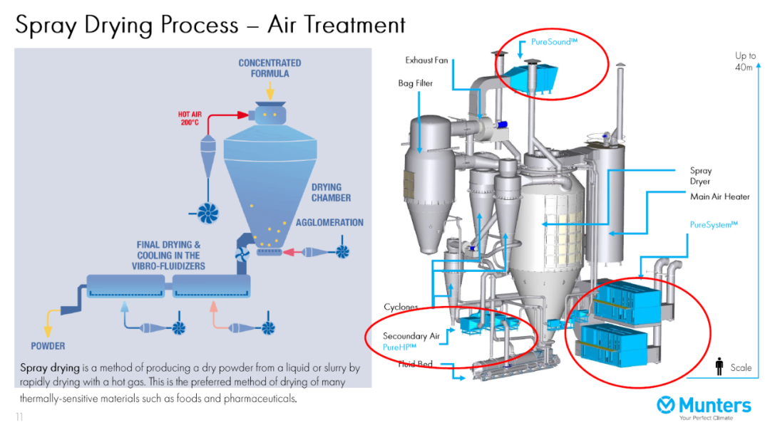 合理的温度控制能提高喷雾干燥的性能和能量,包括避免粘结,减少停机时间、全年保持高的干燥能力,特别是难处理产品干燥能力提高上、降低喷雾干燥能耗,减少冷冻水消耗等。