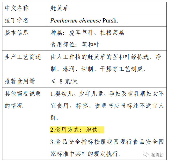 据植提桥了解,赶黄草最早在2016年6月申报新食品原料【卫食新申字(2016)第0006号】,当时申报的原料名称为“泸州古蔺赶黄草粉”,到2020年6月获批新食品原料,历时四年。