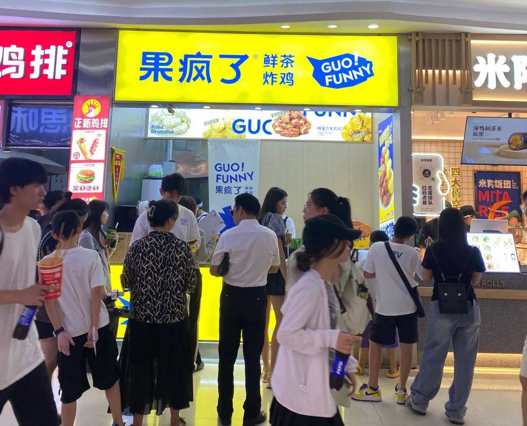 她把长沙万家丽的门店作为实验店,改名为:果疯了鲜茶炸鸡,把炸鸡和茶饮区域按照1:1的比例进行了店型改造。