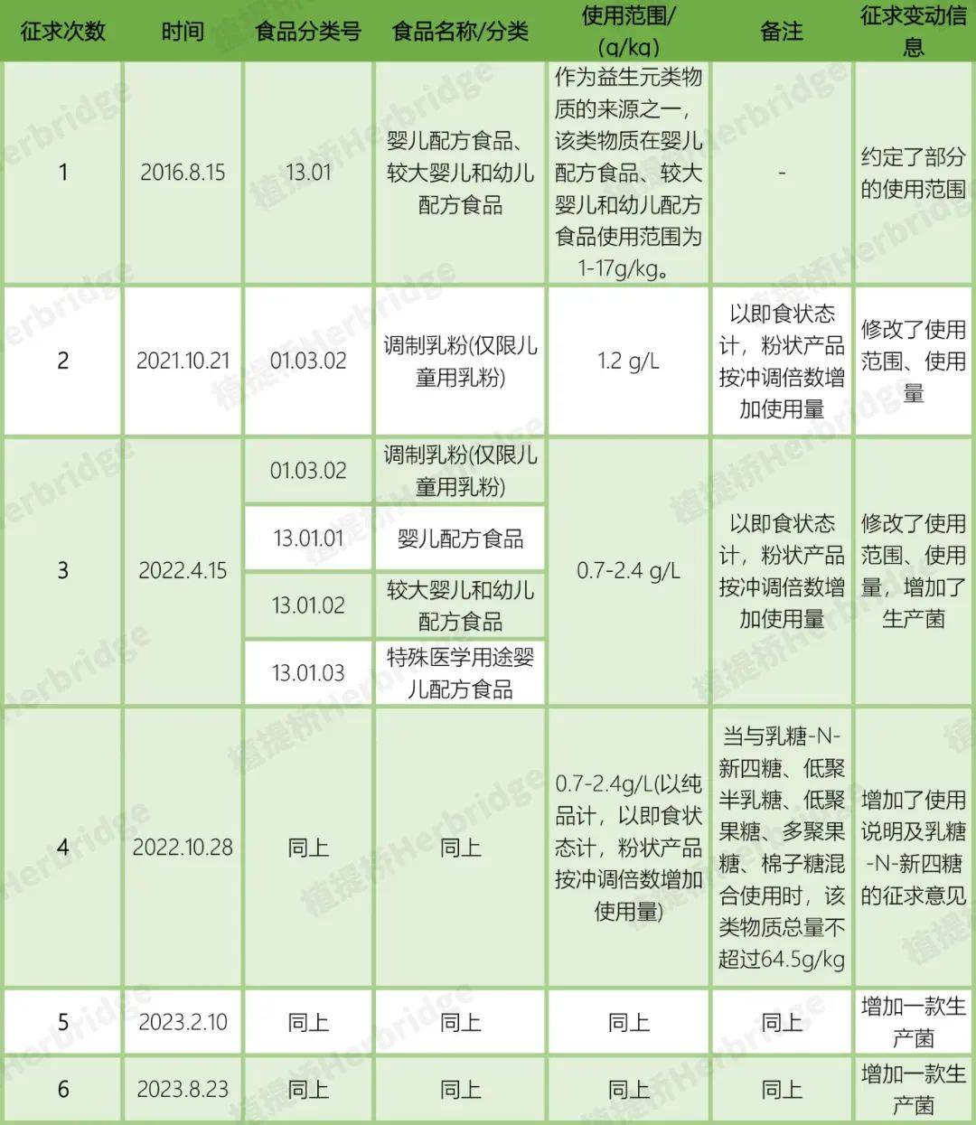 2'-岩藻糖基乳糖历年的征求信息汇总
