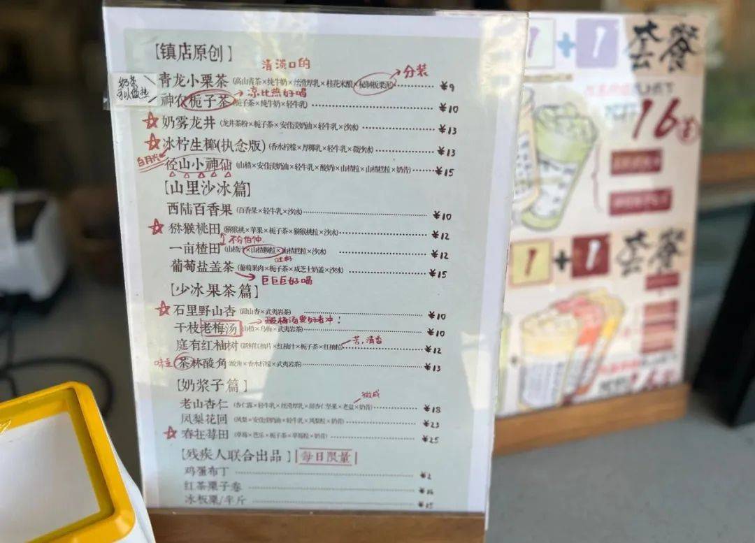 而且,每款饮品都会标明原料来源,在菜单上“手写”注解,从口感、茶香等给出点单建议。