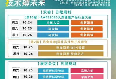 AAES2025南京10月大会完整日程|揭秘新增长!高技术竞争壁垒原料、新增长赛道全景、药食同源新品类......