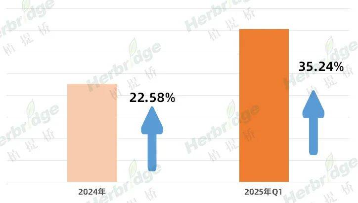 2025年Q1季度补气血赛道产品销售额同比增长35.24%;