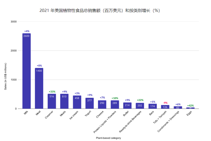 而在目前,根据Spoonshot统计的数据,在2021年植物性肉类的销售额为14亿美元,而植物性海鲜的销售额仅占据植物性肉类销售额的1%,即1400万美元,说明植物性海鲜仅占据植物性食品市场很小的份额。