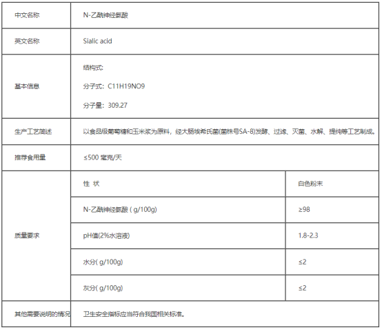 卫健委公告2017年第7号发布N-乙酰神经氨酸为新食品原料。现已有3次因与已批准新食品原料实质等同,而终止审查。