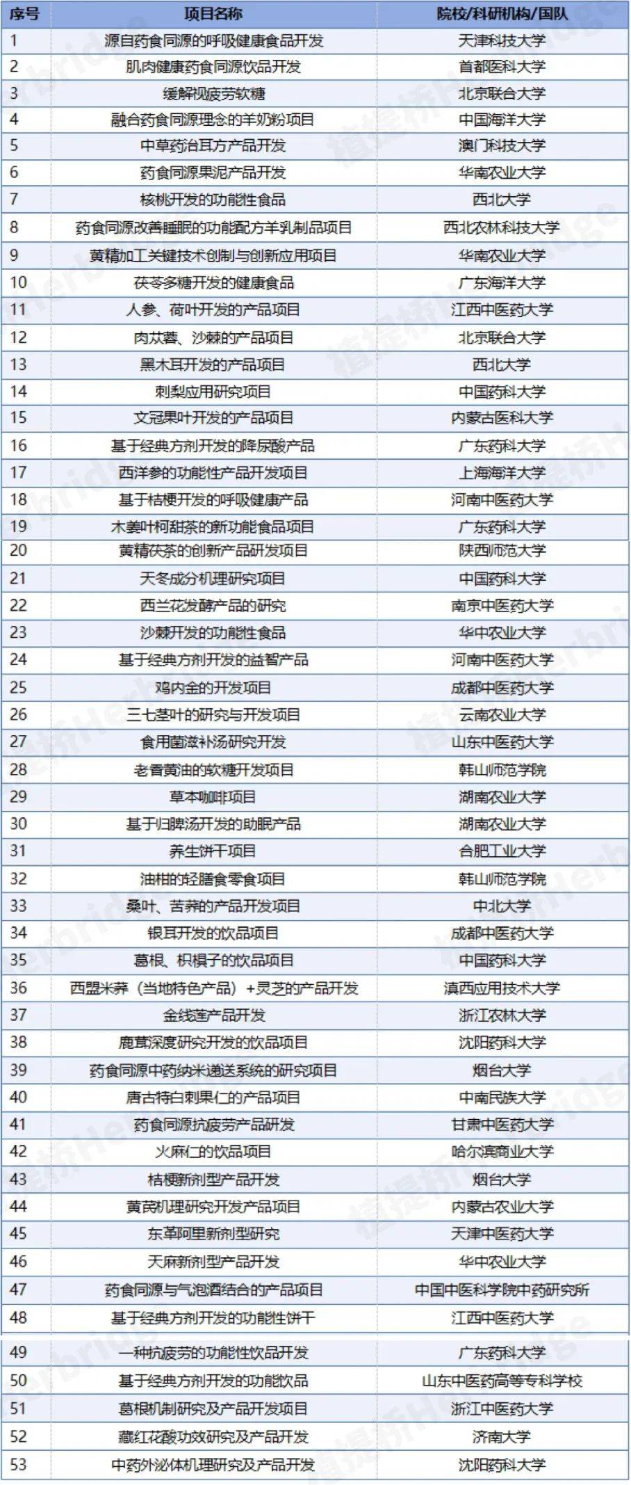 这些项目不仅展示了传统药食同源物质的广泛应用,还带来了新剂型和技术创新,为药食同源产业注入了新的活力。