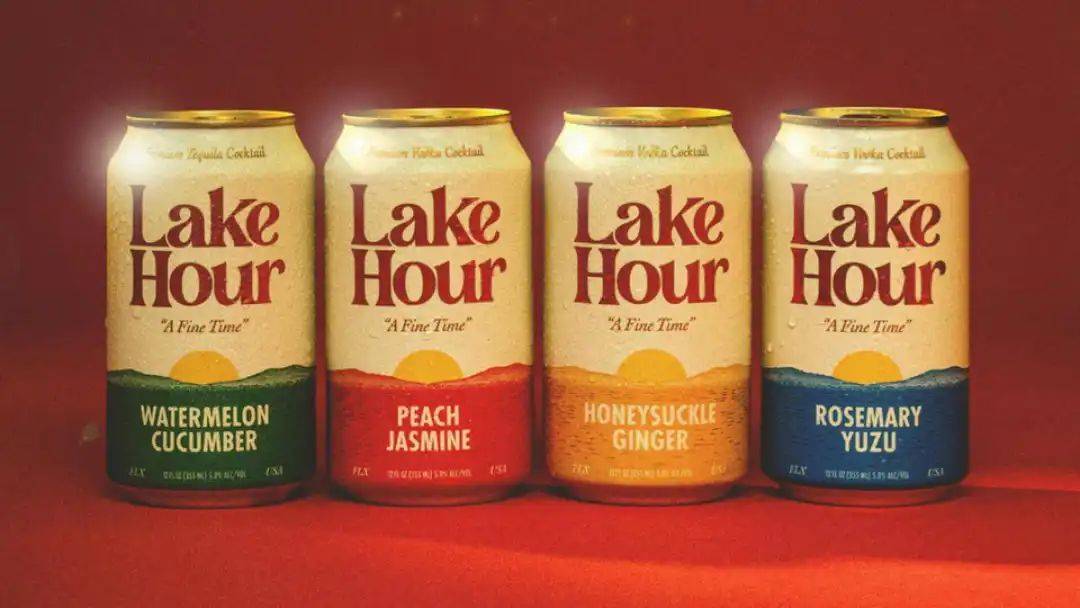 Lake Hour 今年推出的包装就充满怀旧优雅的80年代啤酒罐感觉。铝罐包装和谐地融合了上部的奶油色和底部的彩色,并配上品牌的标志粗衬线字体,充满年代美感。通过底部不同色彩的展现,包装与饮料的风味特征产生共鸣,完美体现出悠闲氛围。