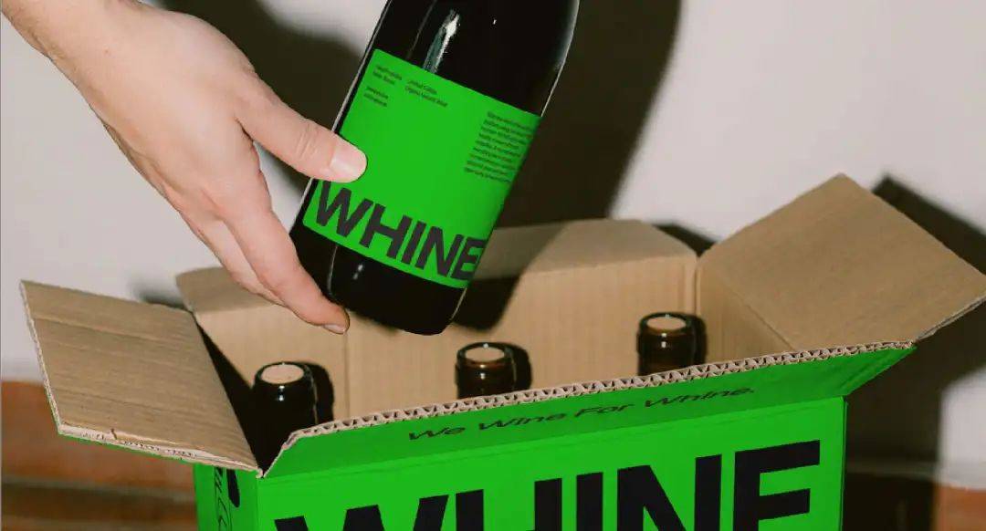 柏林的天然葡萄酒品牌Whine就采用了这种风格的包装。产品以明亮的原绿色作为包装底色,搭配黑色字体的品牌名和产品信息。简单的印刷风格与大胆的色彩应用,展现出品牌对千篇一律的有机葡萄酒包装的挑战,也传达了品牌自身对于绿色葡萄酒概念的理解。