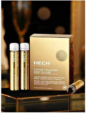 德国hech赫熙曾推出一款深海鱼类胶原蛋白肽口服液,含有珍稀鱼子精华、1500DA的深海鱼皮胶原以及天然水果萃取精华三大珍贵成分。据品牌介绍,每一支安瓶中含有高达11克的高品质胶原蛋白,溶液与胶原蛋白含量比接近1:1,吸收率高。旨在促进人体胶原蛋白合成,高速补充胶原蛋白,修护肌肤和恢复皮肤弹性光泽等。