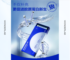 国内品牌「WonderLab」的鱼胶原蛋白三肽饮料,每瓶添加了6000mg胶原蛋白肽,含鱼胶原蛋白三肽1200mg,不含激素不含脂肪。小瓶包装,开瓶即饮。
