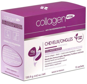 法国品牌Collagen Vital Power蔻维力推出防脱生发亮甲胶原蛋白肽小紫盒。产品含有10克有效活性成分,由8g胶原蛋白肽、3种植物活性成分以及姜黄素B6组合。据品牌官网介绍,产品提供从根部自然再生头发和指甲所需的胶原蛋白和营养素,对促进头发生长,修护头发,预防脱发会有一定的帮助。