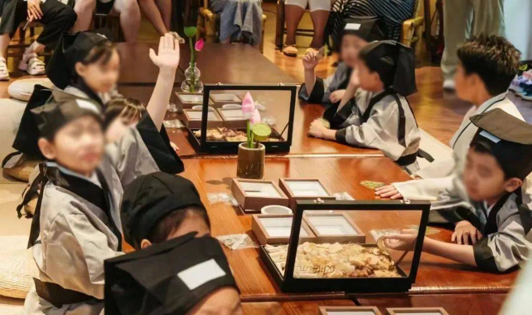 比如,在其大鲍岛穿越店中,专门开辟出一块空间,打造“荷田私塾”。开设宋代点茶、本草纲目小药童、汉服体验、诗词书画等研学课程,成为当地消费者体验传统文化、中小学生课外活动的热门选择。