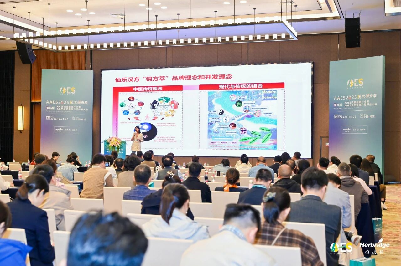 2025年10月24-26日于南京举办的AAES2025大会现场,仙乐健康汉方研发负责人李敏杰博士以《汉方循证之路——现代科技解构传统智慧》为核心,解读了“锦方萃”品牌理念,并分享了安益加®姜黄白芍人参颗粒的研发逻辑与产品价值,展现了传统汉方与现代科技融合的创新成果,为肝脏健康以及其他营养食品的开发提供了新思路新解法。