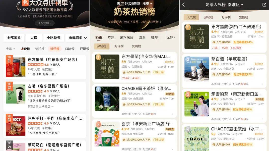 大众点评上,其店铺评分基本都在4.5分以上,多家店铺位列当地好评榜、热门榜第一。其中宜兴八佰伴店、新街口石鼓路店、扬州文昌阁金鹰店等10多家店铺都是外卖万单店,上海大华第一坊等店铺月订单接超过2万。