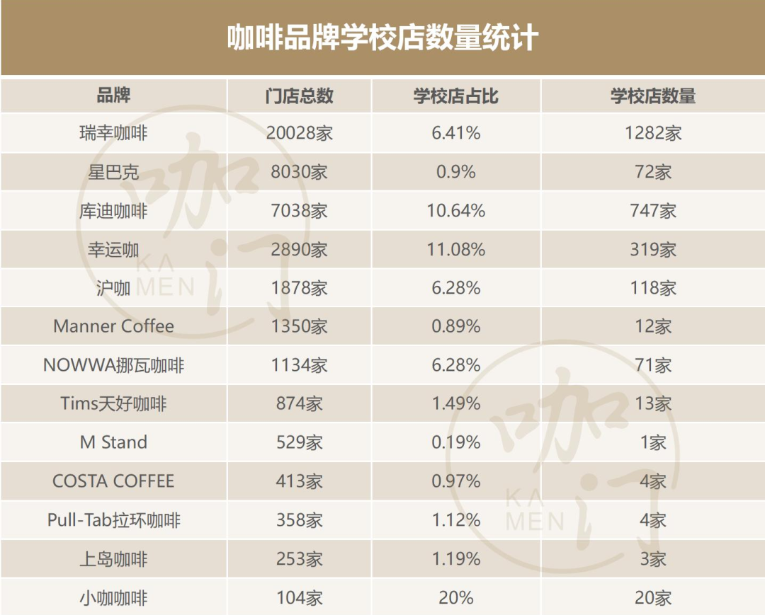 窄门餐眼的数据显示,截至8月5日,瑞幸校园店数量达1282家,库迪校园店747家,幸运咖校园店突破300家;星巴克校园店也超过70家,成为学生党自习、聊天谈事的好地方。
