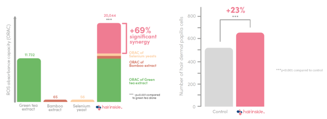 Activ'Inside推出了一款针对头发健康的补剂产品Hair'inside™,产品配方与众不同,由:绿茶、竹子和硒(酵母)组成,协同增效,目前该公司已经针对这一配方申请了知识产权保护。