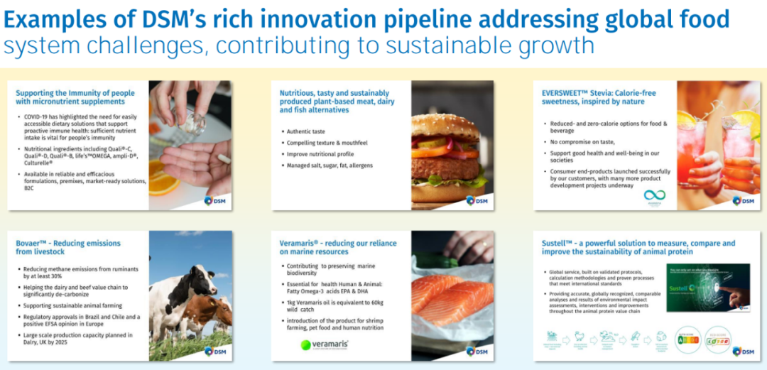 面对全球食品行业急需应对的挑战,帝斯曼有各种各样的解决方案,助力可持续增长,比如——