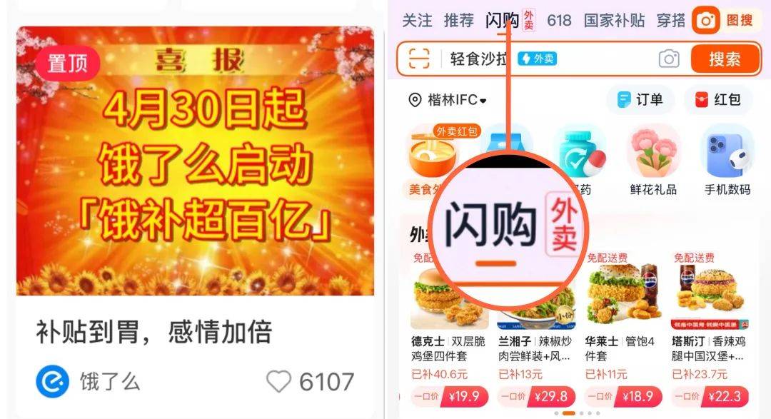 4月30日,饿了么官宣上线“饿超百亿补贴”。5月2日,淘宝闪购全国上线。