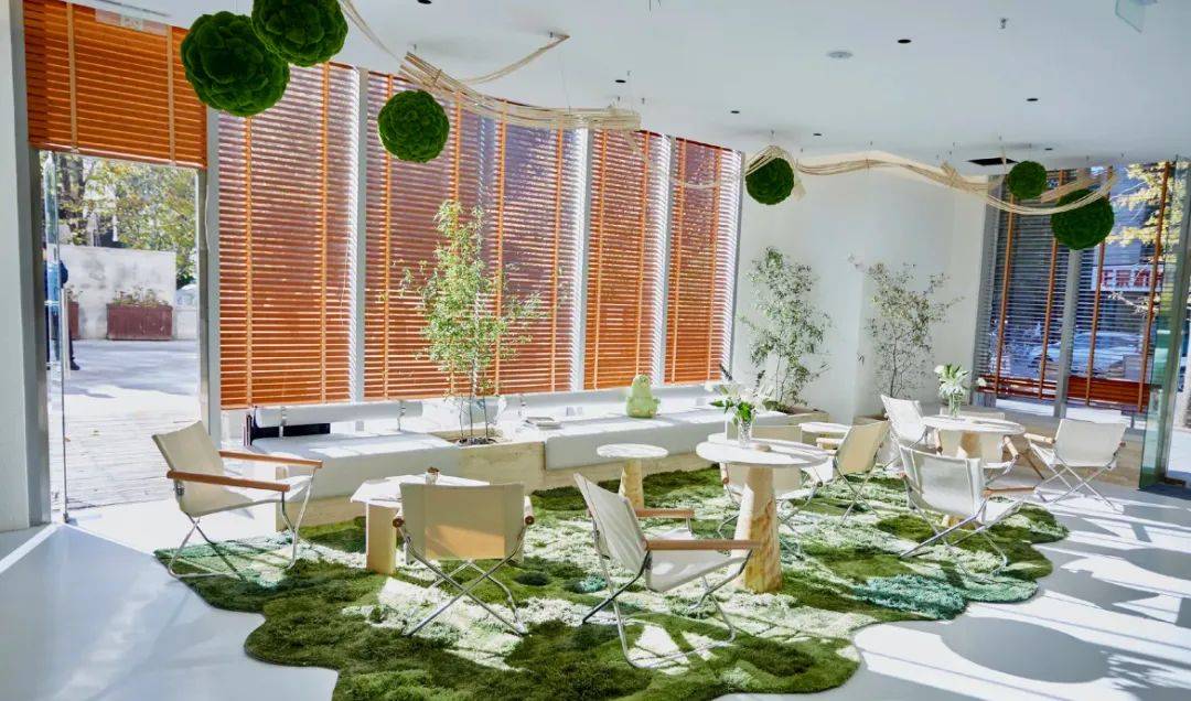 PanemorFit Cafe&Train的咖啡区既有一部分室内空间,又有大面积外摆区。外摆区铺了一块巨大的草皮,搭配帐篷、遮阳伞和露营椅,既吸睛又出片。
