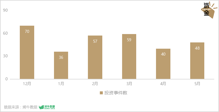 绿槐高柳咽新蝉,薰风初入弦。五月,沥金对多个数据库进行搜集、检索,整理了相关的消费投融资数据。随着立夏时节的到来,投资市场的情绪正逐步升温,据不完全统计,本月共发生投融资事件48起,较上月数据出现小幅提升。