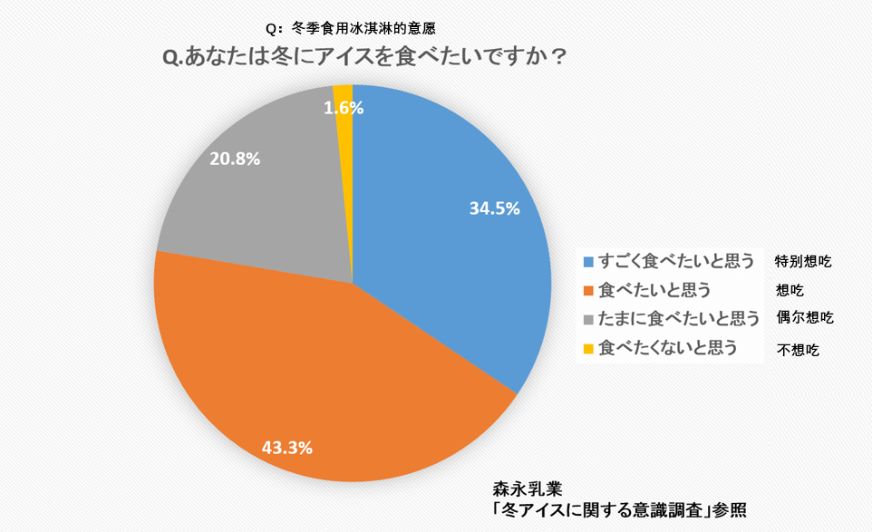 参照森永乳业“关于冬季冰淇淋消费意识调查”,98.4%的人即使在冬天也想吃冰淇淋