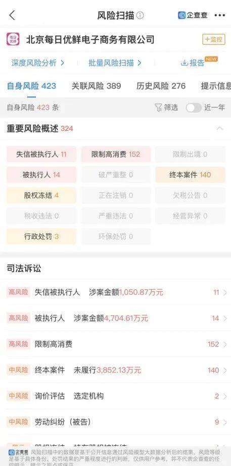 股市无法融资,也找不到投资人,每日优鲜连供应商的货款都没有能力结算了。蒙牛、元气森林等多家供应商直接起诉每日优鲜。根据企查查信息显示,每日优鲜被11次列为失信被执行人,152次被限制高消费。