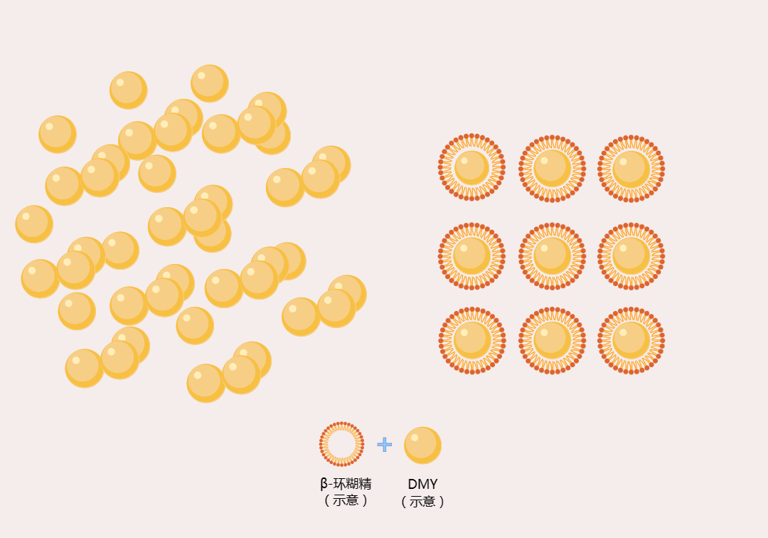 Dihydromyricetin TM二氢杨梅素利用高稳态结合包合技术,将二氢杨梅素靶向送入β-环糊精的疏水性内腔中,而β-环糊精的亲水性外壳则确保了其能够与水性体系相容。经包合技术处理,使二氢杨梅素获得一层亲水性的外壳,在水中能够形成更容易被人体吸收的分子乳液。此外,再利用高稳态微乳化技术,使得二氢杨梅素在肠道碱性环境下具有较好的稳定性。