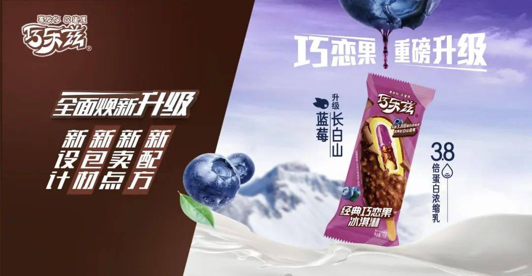 其次,原料选择上,巧乐兹采用更高端、更优质的食材。在经典巧恋果中,内芯升级甄选来自北纬42度长白山腹地的蓝莓果酱。具有得天独厚天然生长环境优势的长白山,孕育出风味独特的长白山蓝莓,其果实饱满,酸甜适宜,口感极佳,为消费者带来崭新的感官体验。此次升级不仅优化了口味和口感,还迎合了高端化品质化的行业趋势,进一步增强了产品和品牌的的价值感。