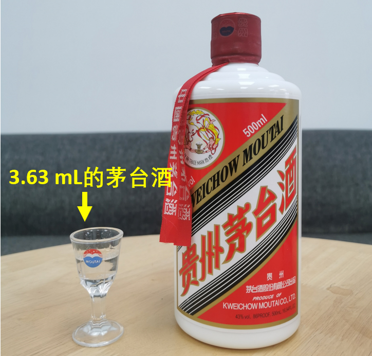 为了给大家可视化,博主买了一瓶茅台,给大家倒出来看看,大概有这么多。