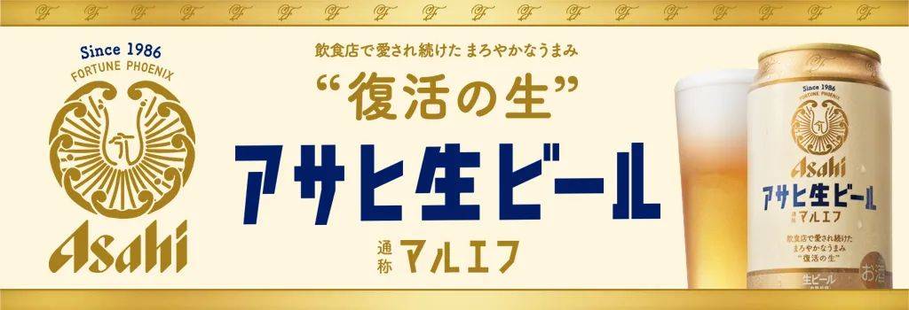 朝日啤酒将1986年支撑朝日啤酒在低迷时期重振雄风的传奇啤酒——朝日生啤重新推出市场后,瞬间受到广大消费者的热烈追捧。这款长久以来深受人们喜爱的产品,采用朝日沿用多年的“醇厚”工艺精心酿制而成。