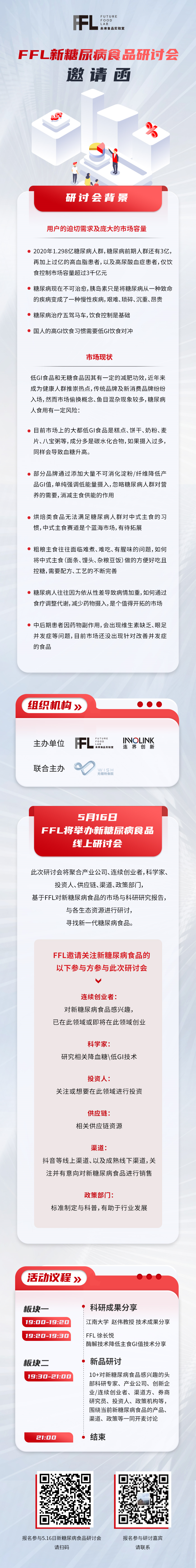 5月16日FFL将举办新糖尿病食品线上研讨会,此次研讨会将聚合产业公司、连续创业者,科学家、投资人、供应链、渠道、政策部门,基于FFL对新糖尿病食品的市场与科研研究报告,与各生态资源进行研讨,寻找新一代糖尿病食品。