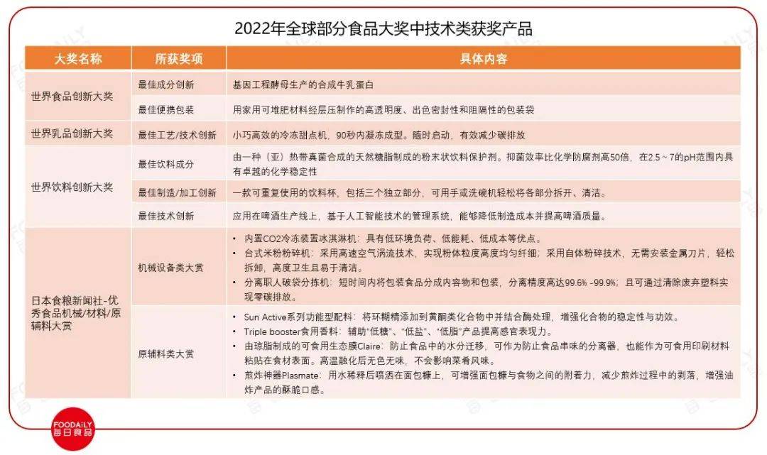 资料来源:世界食品/乳品/饮料创新大奖、日本食粮新闻社,Foodaily整理制图