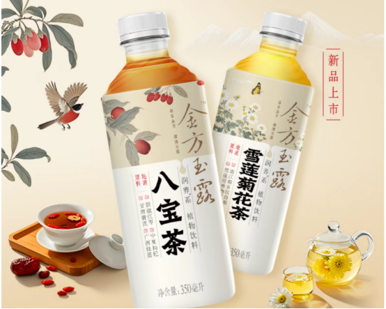 6月6日,健力宝推出新品“金方玉露”系列植物饮料,共有八宝茶,雪莲菊花茶两款产品。八宝茶使用云南滇红茶,搭配和田红枣、中卫枸杞、定西黄芪、陇西党参、玉林桂圆等地道食材制成,面向加班熬夜、早期通勤等场景。雪莲菊花茶使用天山雪莲提取物搭配浙江桐乡杭白菊制成,自带甘甜,清爽滋润,面向外出、熬夜用眼、聚餐等场景。