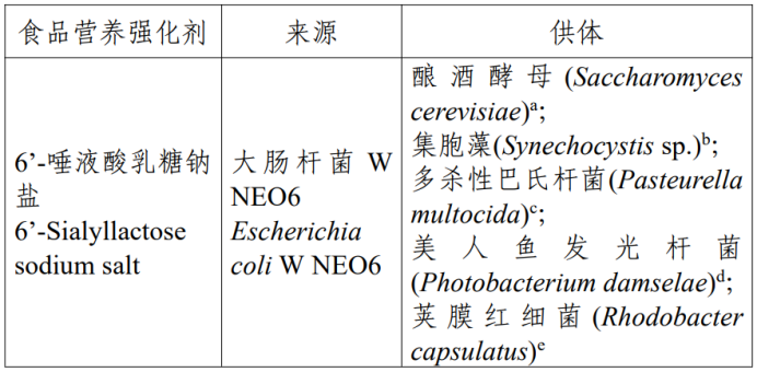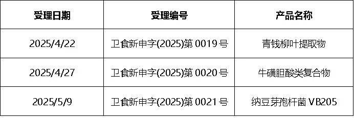 01 受理3种新食品原料 制表:植提桥 (1)青钱柳叶提取物 青钱柳叶在卫健委2013年 第10号公告,“关于批准裸藻等8种新食品原料”中被批准为新食品原料。来自胡桃科植物青钱柳,其叶可用来冲泡,民间长期采用其嫩叶制茶饮用。 青钱柳叶提取物,主要是多糖、三萜、皂苷、黄酮等成分。 拓展阅读:法规动态|多款“三新原料”被受理,HMO、益生菌、猴头菇菌丝体、青钱柳叶提取物等 (2)牛磺胆酸类复合物 牛磺胆酸是胆酸与牛磺酸通过酰胺键结合而成的结合型胆汁酸,天然存在于蛇胆、牛胆、羊胆等多种动物的胆汁之中。 牛磺胆酸能够作为高效的乳化剂,显著降低脂肪表面的张力,促使脂肪分散形成微小的微团结构,极大地增加了脂肪与消化酶的接触面积,从而有效促进脂肪的消化。 牛磺胆酸还能协助脂溶性维生素(如维生素 A、D、E、K)在肠道内的吸收,确保这些对人体生命活动至关重要的营养成分得以充分摄取。 (3)纳豆芽孢杆菌VB205 纳豆芽孢杆菌是一种从传统食品纳豆中分离出来的益生菌,属于枯草芽孢杆菌的一个亚种。它是一种革兰氏阳性、好氧的芽孢杆菌,具有耐高温、耐酸、耐胆盐等特性。 纳豆芽孢杆菌用于制作纳豆,发酵过程中生成多种活性成分如γ-氨基丁酸、维生素K2,分泌的纳豆激酶。 2024年11月8日,卫食新申字(2024)第0020号受理纳豆芽孢杆菌VB205的申报,2024年12月02日告知延期,想必此处是企业完善申报资料后的再次提交。 02 受理3种食品添加剂新品种 制表:植提桥 (1)焦糖色(普通法) 焦糖色(普通法)是以碳水化合物为主要原料、加或者不加酸(碱)而制成。 焦糖色根据工艺不同,分为亚硫酸铵法、苛性硫酸盐法、加氨生产、普通法4种。应用范围很广,几乎可以应用在任何食品类型中。 (2)6’-唾液酸乳糖钠盐 6’-唾液酸乳糖钠盐作为母乳低聚糖(HMOs)中重要的成分,由半乳糖、葡萄糖和唾液酸组成,通常通过微生物发酵法生产。 6’-唾液酸乳糖钠盐已有多次申报,并于2024年3月12日首次征求意见。 在公告关于“公开征求羟基酪醇等7种食品添加剂新品种意见”中,并制定了6’-唾液酸乳糖钠盐完整的质量标准。 表:生产6’-唾液酸乳糖钠盐的生产菌信息 (3)乳糖-N-新四糖 乳糖-N-新四糖属于非岩藻糖基化中性母乳寡糖(HMOs),由半乳糖、N-乙酰葡糖胺和葡萄糖组成。 乳糖-N-新四糖已多次获批食品添加剂新品种,同时已有多款生产菌获得安全评估,被允许用于乳糖-N-新四糖的生产。 此次申报,大概率仍是增加生产菌的申请。 信息来源:卫健委官网