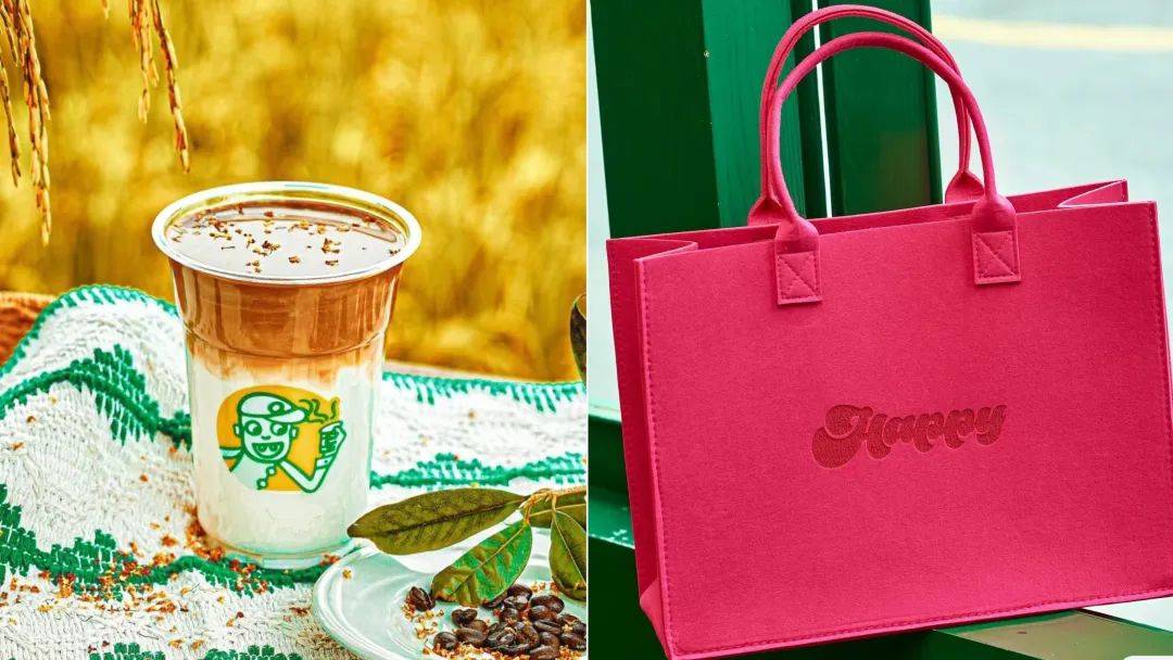 让我印象深刻的是,搞怪的品牌IP和自带情绪力的品牌名,其产品名也都围绕“快乐”设置,比如“真开心拿铁”,周边包袋套餐则是“包你开心”。