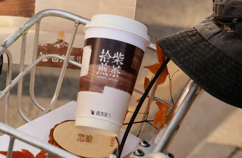 继明星单品“竹生空野”创下销量新纪录(累计售出2000万杯)后,元旦前夕,百分茶再次向奶茶发力,推出开年“王炸”:拾柴煎茶。