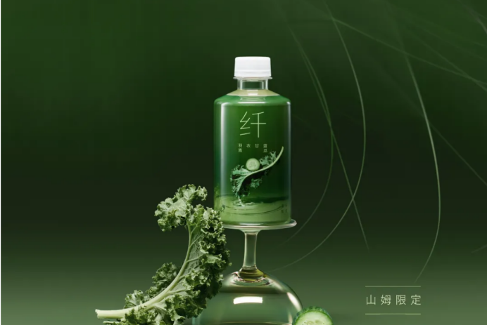 6月12日,喜茶推出山姆限定瓶装新品羽衣甘蓝青瓜。该新品的主要原料为羽衣甘蓝、青瓜,并以荷叶入茶,融合了绿妍茶底与抹茶。此外,饮品还额外添加了聚葡萄糖和柑橘纤维两种膳食纤维。一瓶的能量小于0.5牛油果的能量,主打纤体。