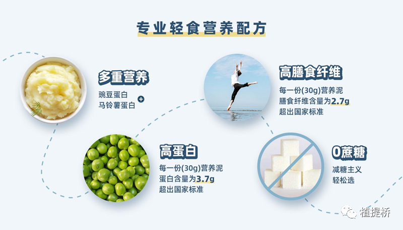 土豆集集团推出植物营养泥全新产品,选用了豌豆蛋白搭配马铃薯蛋白的双重营养。每100g营养泥蛋白含量高达12.3g,相当于3.4倍普通牛奶的蛋白质含量;膳食纤维含量高达9g,相当于100g西蓝花膳食纤维含量的2.4倍,均超出国家标准。