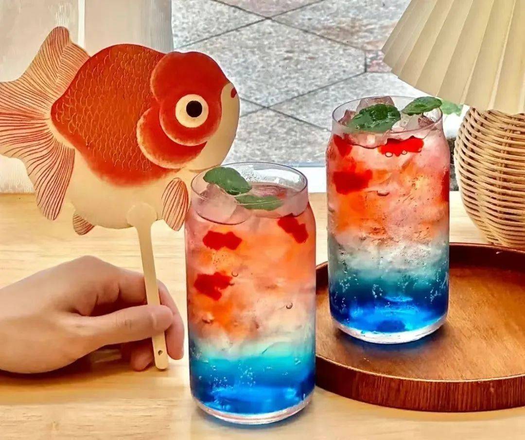 继“游泳气泡水”大流行后,又一波好看的饮品在地摊上出圈了。