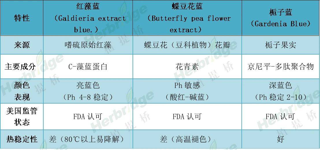 另一方面,FDA在2025年密集批准栀子蓝、红藻蓝、蝶豆花提取物等天然色素,为替代方案铺路。其中栀子蓝因耐热性、pH稳定性成为替代合成蓝色素(亮蓝、靛蓝)的关键选项。