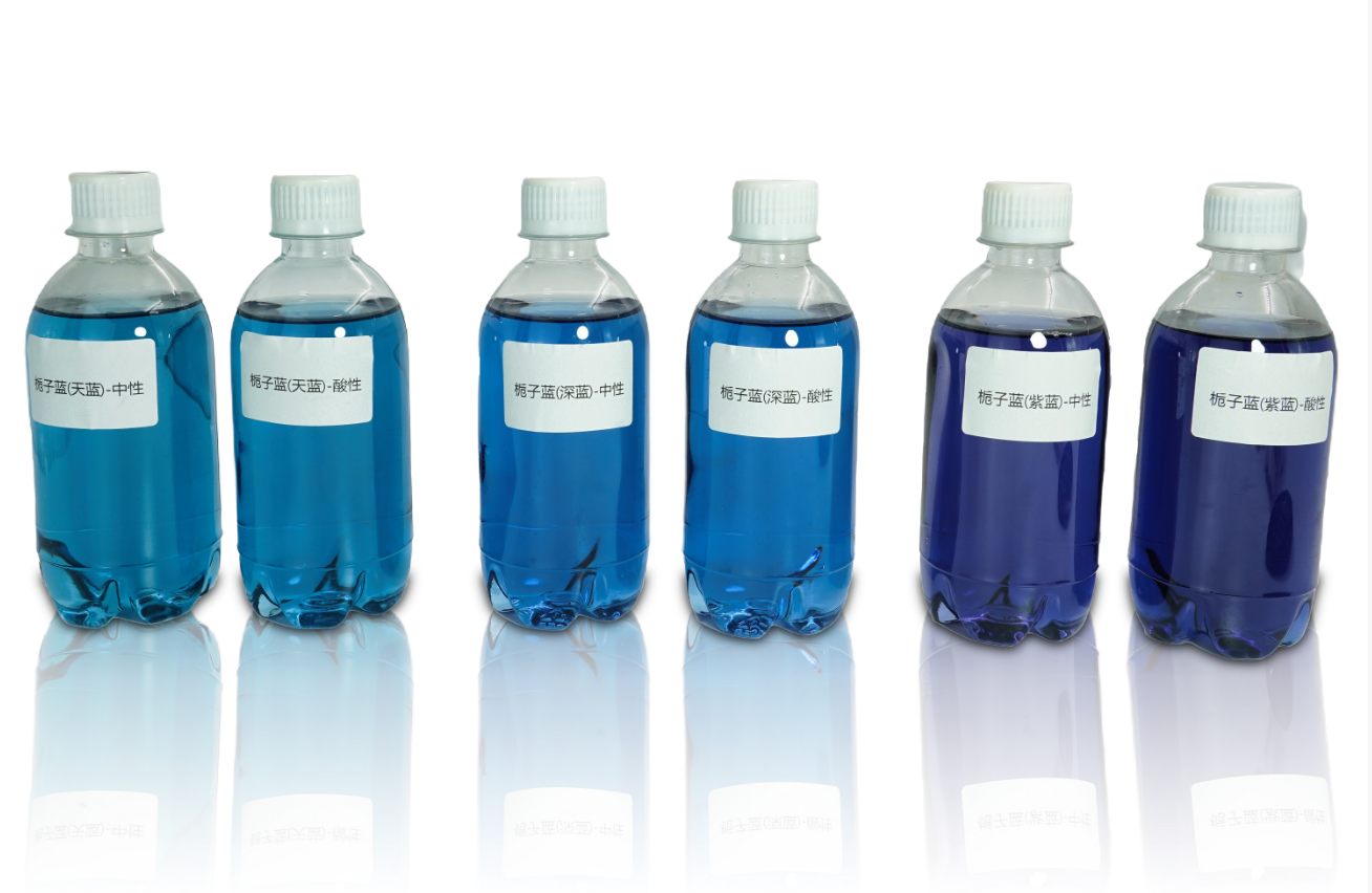 栀子蓝的主要成分是京尼平-多肽聚合物,由栀子(Gardenia jasminoides J.Ellis)果实提取的栀子苷经特定酶解转化为京尼平,再与大豆蛋白水解物聚合而成。